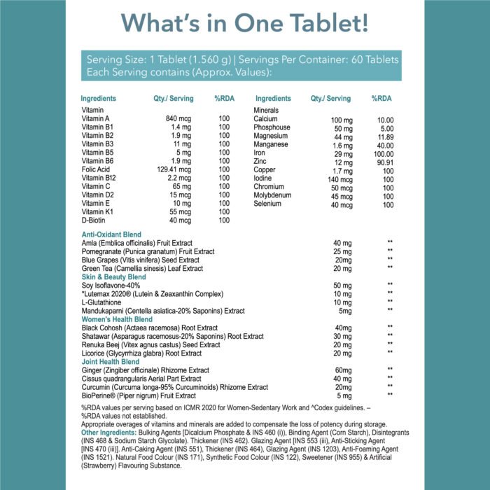 Boost your daily wellness with our Multivitamin for Women, expertly formulated to support energy, immunity, and hormonal balance. Enriched with essential vitamins and minerals, it’s your key to thriving health and vitality.