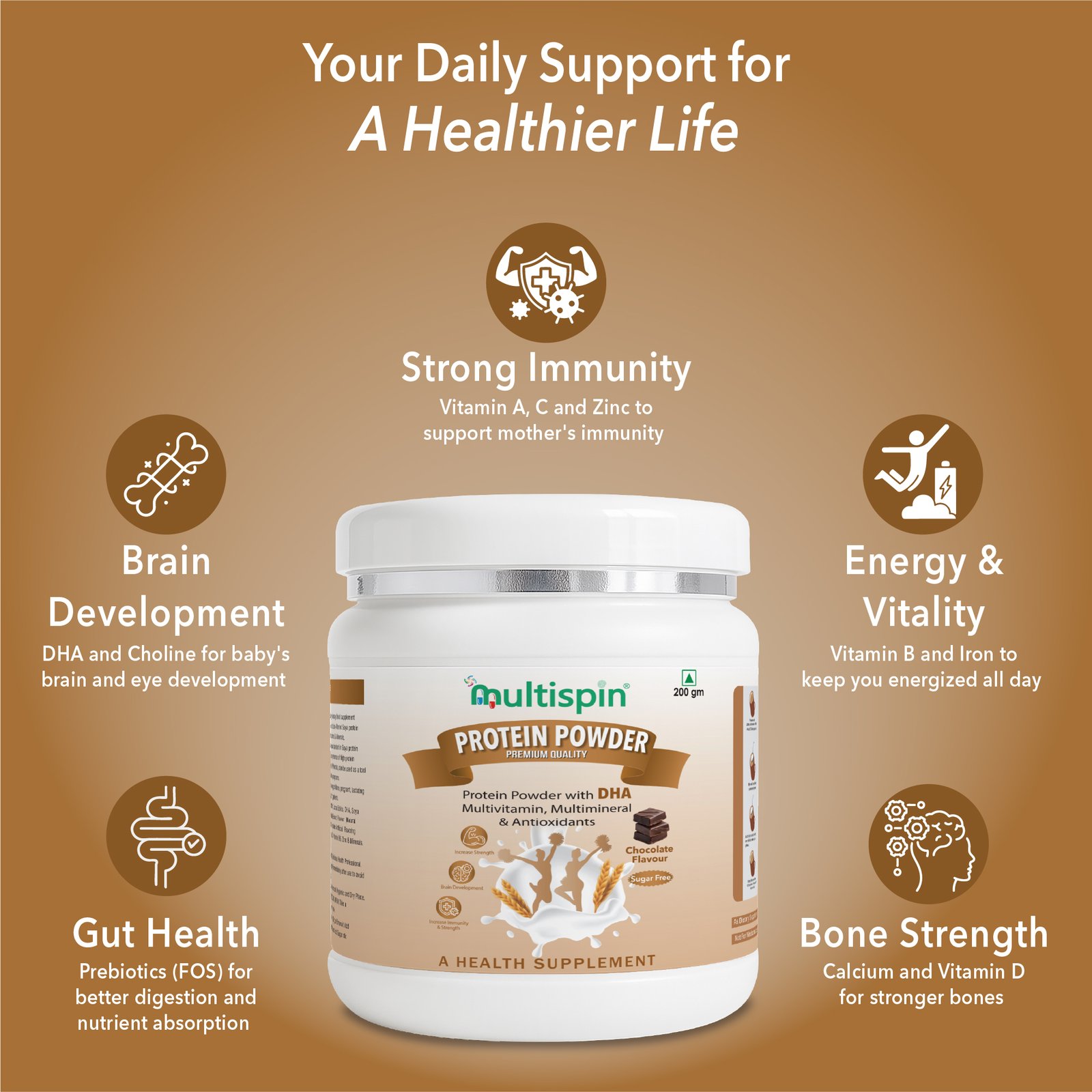 With Multispin Protein Powder, every scoop is packed with goodness to keep your family strong, energetic, and healthy. Mix it with milk or water for a creamy, chocolaty drink your whole family will love!